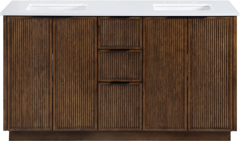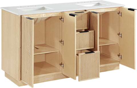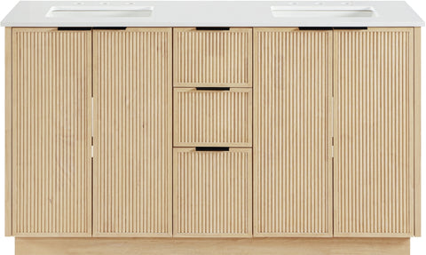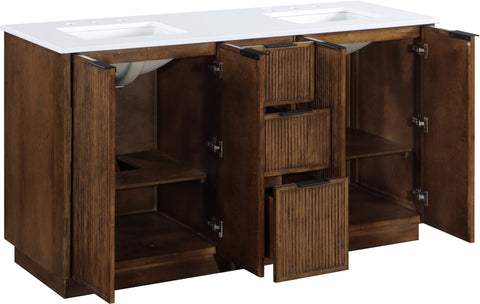 Meridian Furniture Willard 60" White Engineered Stone And Solid Wood Bathroom Vanity