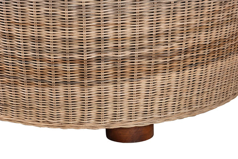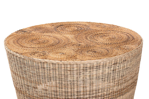 bali & pari Hosanna Natural Rattan Coffee Table - Handwoven Wicker Accent Table with Textured Spiral Top for Living Room or Lounge