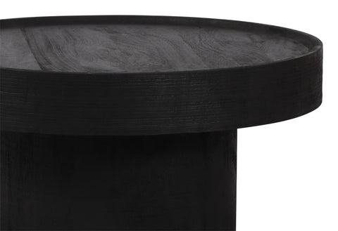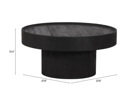 The Watson Coffee Table in black is a sleek and modern piece made from durable mango wood. Its minimalist design and rich black finish add a touch of sophistication to any living space, making it a stylish and functional centerpiece for contemporary interiors. Features: Assembly not required, Painted Mango Wood round shape tabletop, Rubber feet help prevent floor scratches, Supports up to 200 lb. Dimensions: 27.6" W x 27.6" D x 13.4" H. Weight: 27,7 lbs.