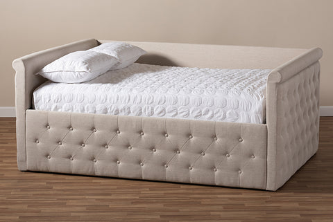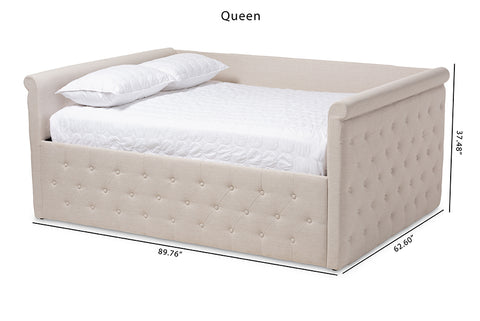 Baxton Studio Amaya Modern and Contemporary Light Beige Fabric Upholstered Queen Size Daybed