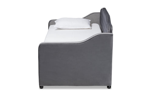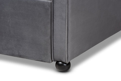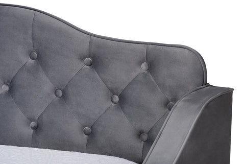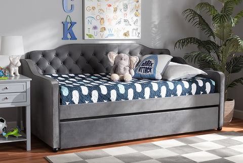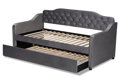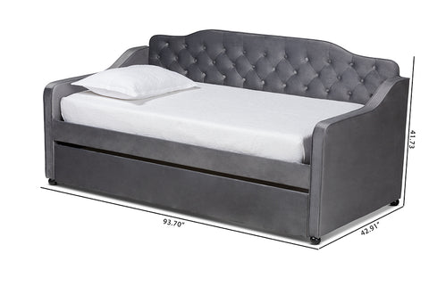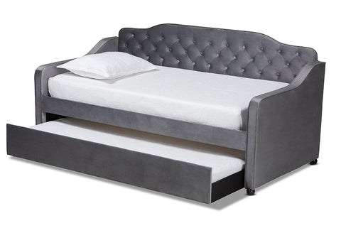 Baxton Studio Freda Traditional and Transitional Grey Velvet Fabric Upholstered and Button Tufted Twin Size Daybed with Trundle