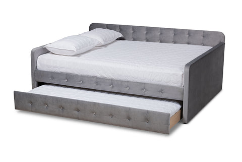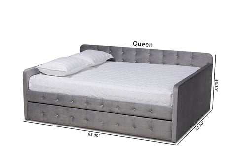Baxton Studio Jona Modern and Contemporary Transitional Grey Velvet Fabric Upholstered and Button Tufted Queen Size Daybed with Trundle
