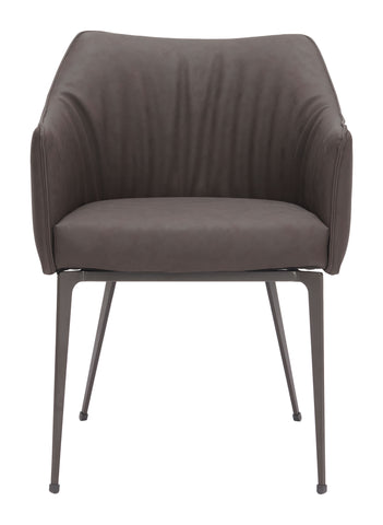 Designed for both style and functionality, the Belmont Dining Chair in Brown is crafted from 100% polyurethane faux leather and powder coated steel. Its modern design is perfect for hospitality use, enhancing any space with elegance and practicality. Features: Assembly required, Plush and durable faux leather fabric, Armrest support, Powder coated steel leg, Rubber feet help prevent floor scratches, Supports up to 275 lb. Dimensions: 21.9" W x 22.6" D x 29.5" H. Weight: 22 lbs.