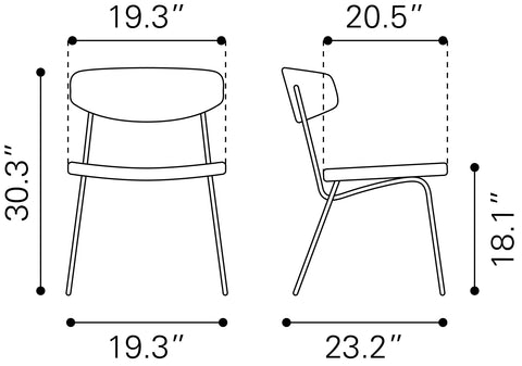 Zuo Charon Dining Chair (Set of 2) Vintage Brown