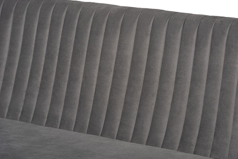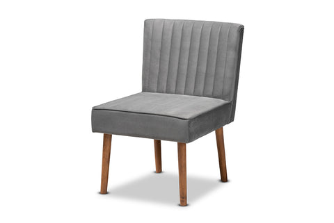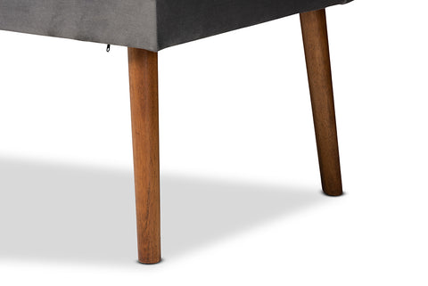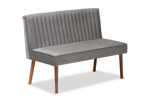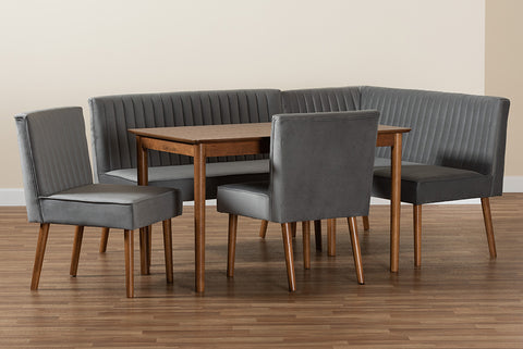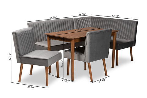 Baxton Studio Alvis Mid-Century Modern Grey Velvet Upholstered and Walnut Brown Finished Wood 5-Piece Dining Nook Set