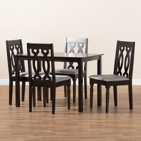 Baxton Studio Cherese Modern and Contemporary Grey Fabric Upholstered Espresso Brown Finished 5-Piece Wood Dining Set