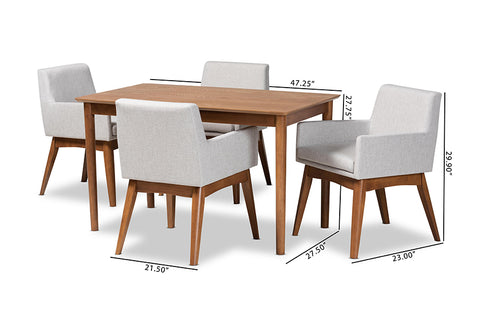 Baxton Studio Dorina Mid-Century Modern Greyish Beige Fabric Upholstered and Walnut Brown Finished Wood 5-Piece Dining Set