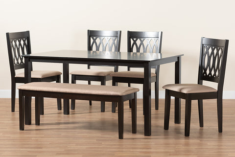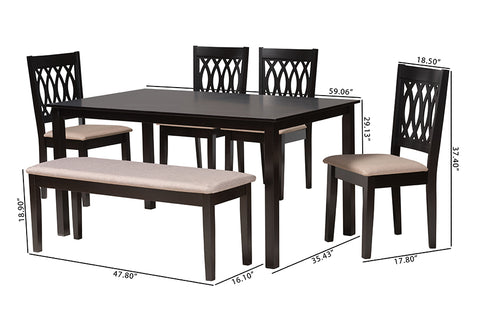 Baxton Studio Florencia Modern Beige Fabric and Espresso Brown Finished Wood 6-Piece Dining Set
