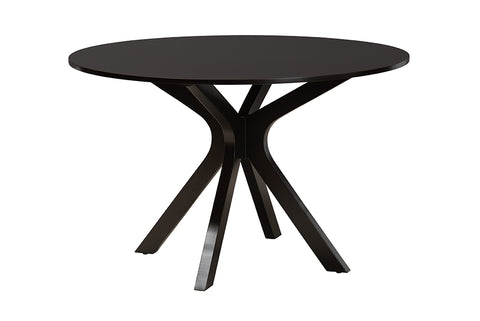 Cultivate an air of sophistication in your dining room with the stunning Maya dining set. Made in Malaysia, the set includes six dining chairs and one table constructed from sturdy wood. Each chair is fitted with a foam-padded seat and upholstered in smooth fabric as well as a captivating cut-out design on the backrest. Requiring assembly, the large, circular tabletop ensures plenty of elbow room for each member of the table. Demonstrating unique yet refined craftsmanship, the Maya dining set brings elegance to any dining room. Features: Modern set includes six (6) chairs and one (1) table, Frame constructed from Rubberwood and Engineered Wood, Chairs padded with foam and upholstered in fabric, Cut-out backrest, Round tabletop, Angled legs, Sculpture-like table base Table Overall: 30" high x 44.9" wide x 44.9" deep; Table Legs: 29.1" high; Chair Overall: 37.4" High x 18.1" Wide x 20.3" Deep; Seat Dimensions: 17.9" High(From Floor) x 18.7" Wide x 15.7" Deep; Back: 19.7" High; Chair Legs: 16.9" High; One (1) Table; Six (6) Dining Chairs. Weight: 116,7 lbs.