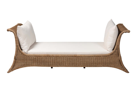 bali & pari Kalisha Natural Rattan Daybed with Cushions - Coastal Boho Indoor Lounge Sofa Bench for Living Room, Sunroom, or Bedroom Relaxation