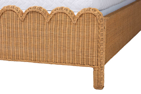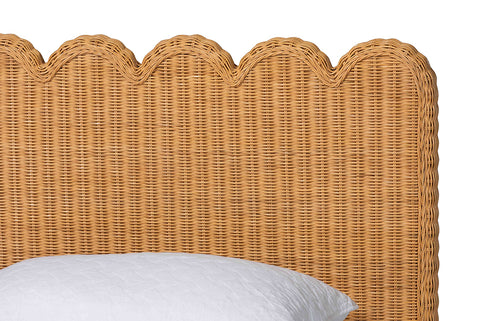 bali & pari Maritza Scalloped Natural Rattan Bed Frame - Handwoven Wicker Headboard and Footboard with Decorative Edge Detail, Boho Coastal Style for Bedroom, King