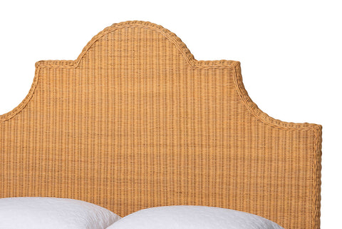 bali & pari Melanie Natural Rattan Bed - Coastal Boho Bed Frame with Scalloped Headboard, Queen