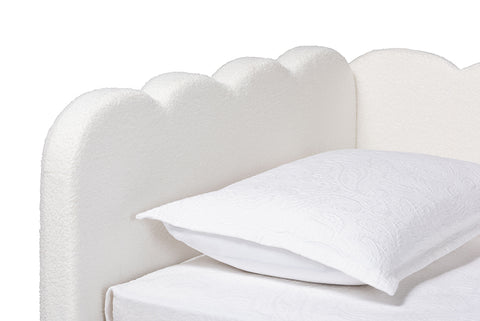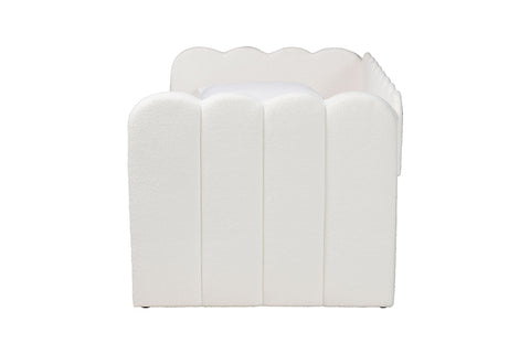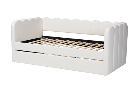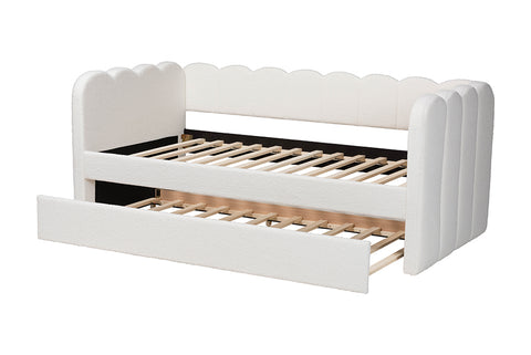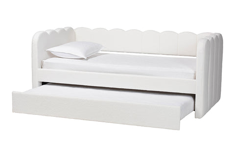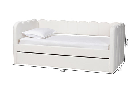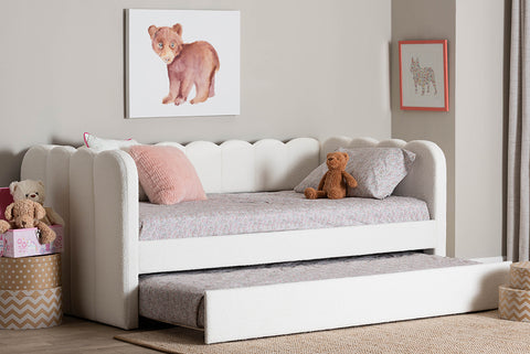 Baxton Studio Palmer Cream Teddy-Bear Fabric Daybed with Rolling Trundle - Scalloped Edge Daybed with Plush Upholstery, Modern Sofa Bed for Bedroom or Guest Room, Twin