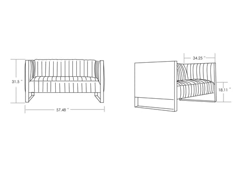 Manhattan Comfort Trillium Mid-Century Modern 57" Velvet Loveseat in Teal