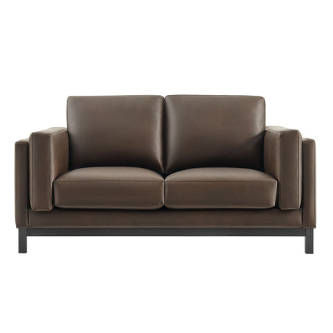 Refined lines and enduring design shape the Roscoe 81-Inch Lounge Sofa, a tailored take on American-traditional style. Upholstered in smooth vegan leather, this square couch features a deep, generous seat with plush back and seat cushions, made of high resiliency foam, further supported by spring pocket coils and sinuous springs for lasting comfort. The low, streamlined profile sits atop a kiln-dried weathered wood frame with integrated legs and non-marking foot caps for added stability and floor protection. A versatile faux leather couch for modern or classic interiors, Roscoe is the ideal deep seat couch—great as an office couch, apartment couch, or lounge couch for bedroom. Weight Capacity: 800 lbs. Features: Vegan Leather, Deep Seat Comfort with High Resiliency Foam, Kiln-Dried Weathered Wood Frame, Pocket Coil + Sinuous Springs, Low Profile Silhouette, Non-Marking Foot Caps, Assembly Required Overall Product Dimensions: 35.6"L x 63"W x 33.9"H, Seat Dimension: 22.8"L x 44.3"W x 17.9"H, Armrest Dimension: 33.1"L x 35.2"W x 24.4"H, Backrest Dimension: 10"L x 10"W x 16.1"H, Cushion Thickness: 7.1"H, Leg Dimension: 1.6"L x 1.6"W x 3.7"H, Base Dimension: 44.3"W x 4.7"H . Set Includes: One - Roscoe Loveseat
