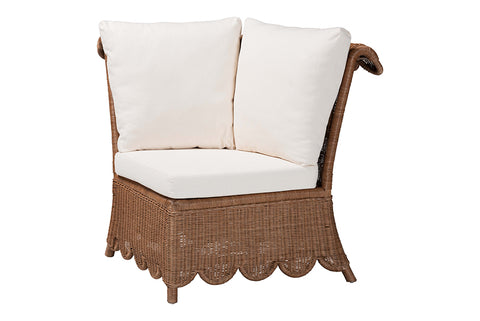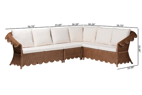 bali & pari Detta Natural Rattan 4-Piece Sectional Set - Handwoven Wicker Corner Lounge Seating with Scalloped Skirt Base and Rolled Arms, Boho Coastal Style for Sunroom or Living Room