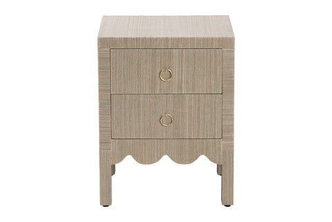 bali & pari Juniper Grasscloth Nightstand with Scalloped Base - Woven Texture 2-Drawer Bedside Table with Gold Ring Pulls, Accent Bedroom Storage Furniture