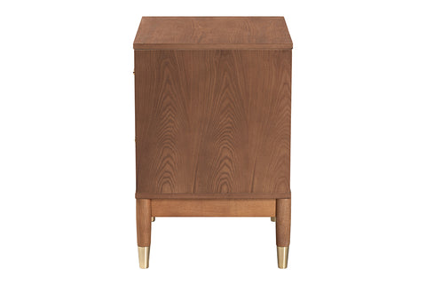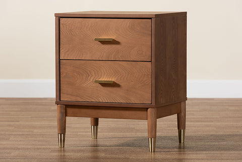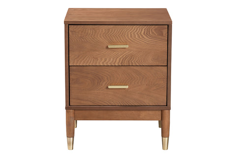 Baxton Studio Mandolin Mid-Century Ash Walnut Wood 2-Drawer Nightstand