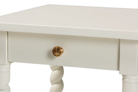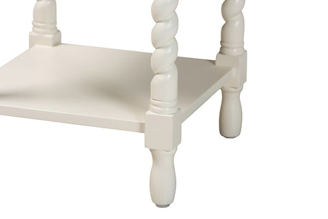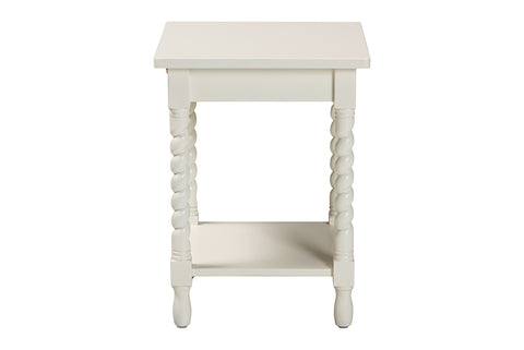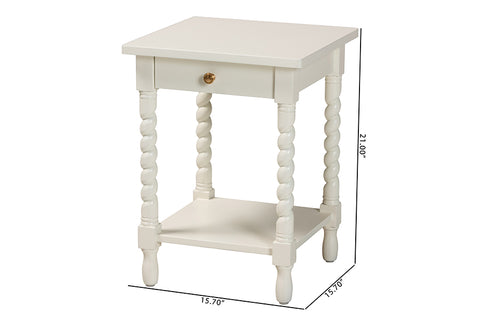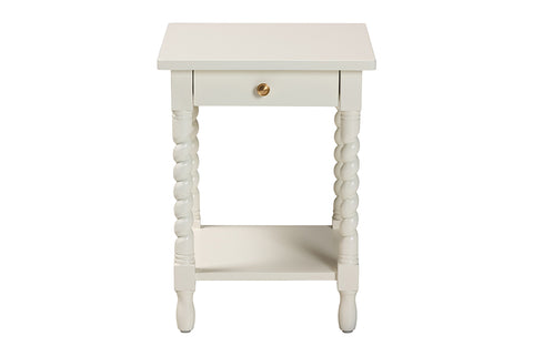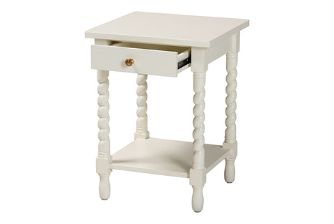 Baxton Studio Niklas Nightstand with Twisted Legs - 1-Drawer Bedroom Side Table with Storage Shelf, White