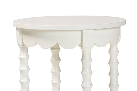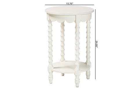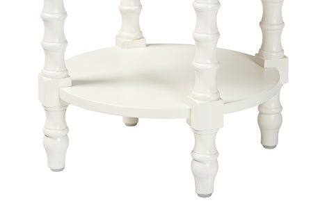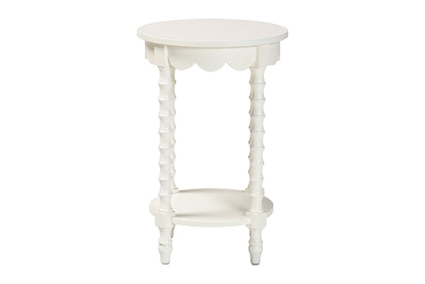 Baxton Studio Sally Round Nightstand with Bamboo Inspired Legs - Scalloped Bedroom Side Table with Open Shelf, White