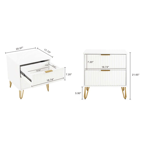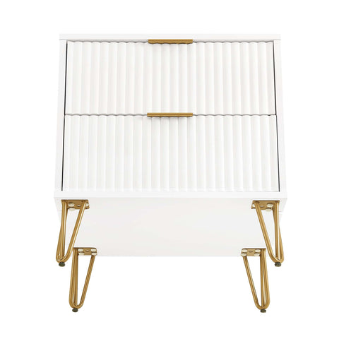 Manhattan Comfort Dumbo Modern 20" Fluted Nightstand in White (2-Drawer)