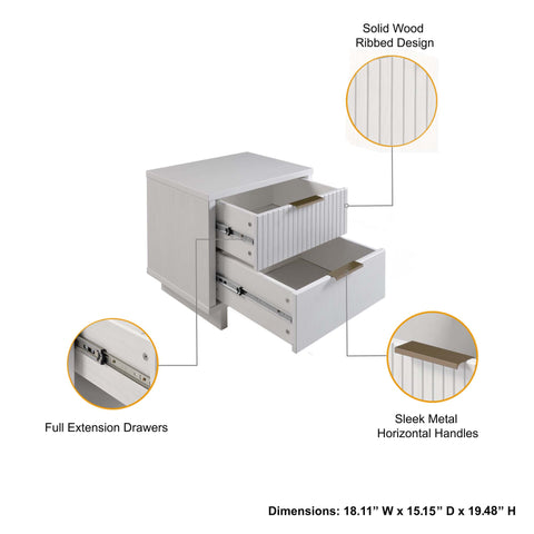 Manhattan Comfort Granville Modern 18" Nightstand in White (2-Drawer)