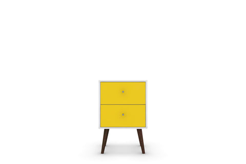 Manhattan Comfort Liberty Mid-Century Modern 18" Nightstand in White and Yellow (2-Drawer)