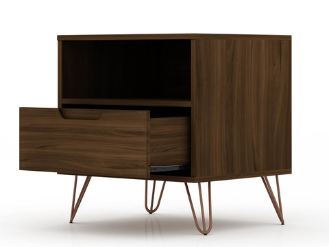 Manhattan Comfort Rockefeller Mid-Century Modern 20" Nightstand in Chestnut Brown (1-Drawer)
