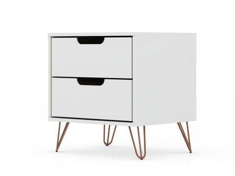 Manhattan Comfort Rockefeller Mid-Century Modern 20" Nightstand in White (2-Drawer)