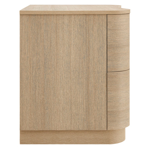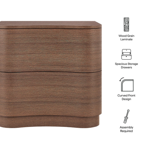 Sculptural lines and compact storage make the Mirae 2-Drawer Nightstand a modern essential for the bedroom or living space. Designed with a clean silhouette and softly curved drawer fronts, this bedside table adds a touch of dimension to any setting. Smooth wood grain laminate highlights the flowing form of this versatile nightstand, while two spacious deep drawers provide storage for books, accessories, or nighttime essentials. Whether styled next to a bed, sofa, or used as a side table, this versatile nightstand with storage blends functional design with artistic appeal. Assembly required. Features: 2-Drawer Nightstand, Sculpted Curved Drawer Fronts, Wood Grain Laminate Finish, Engineered Wood Construction, Assembly Required Overall Product Dimensions: 18.1"L x 23.7"W x 21.9"H, Drawer Front Dimension: 0.6"L x 23.5"W x 9.1"H, Drawer Frame Dimension: 0.5"L x 15.7"W x 6.5"H, Inner Drawer Dimension: 15.2"L x 14"W x 5.8"H . Set Includes: One - Mirae 2-Drawer Nightstand