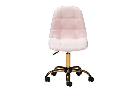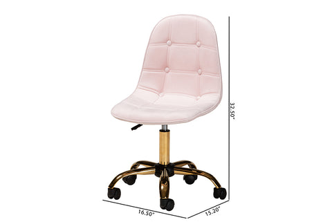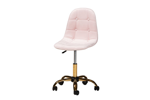 Baxton Studio Kabira Contemporary Glam and Luxe Blush Pink Velvet Fabric and Gold Metal Swivel Office chair