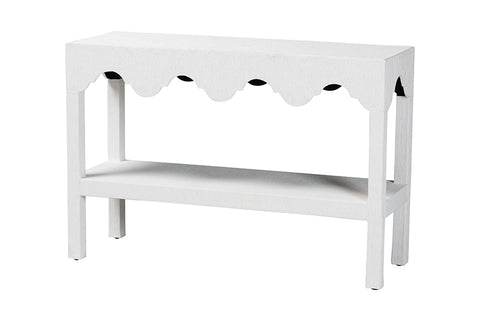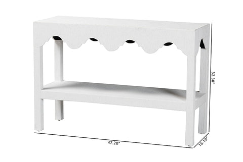 bali & pari Nolan Natural Grasscloth Console Table - Two-Tier Entryway Table with Scalloped Apron, Modern Coastal Accent Table for Living Room or Hallway