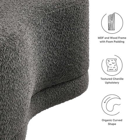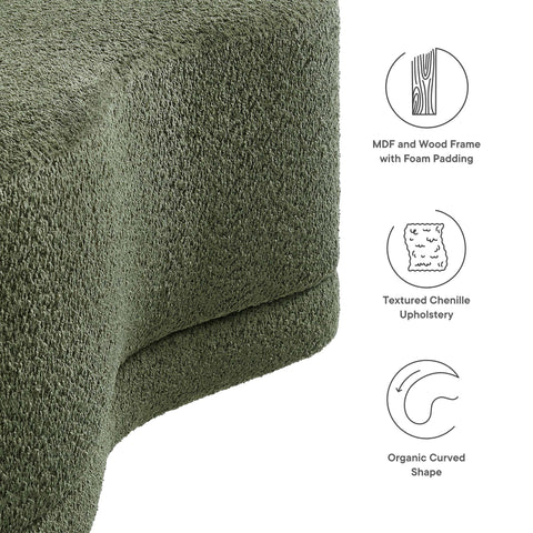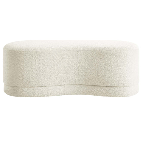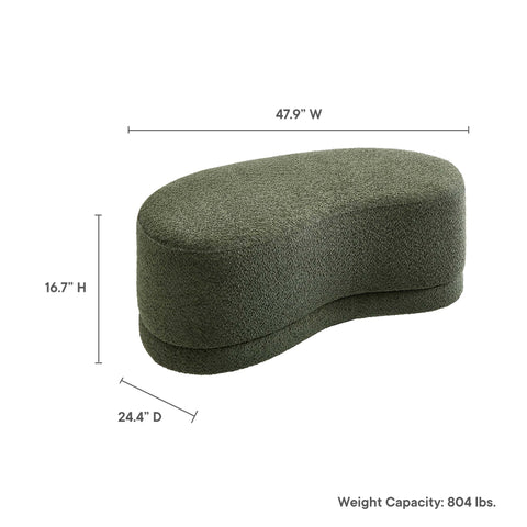 The Nimbus Ottoman, with its organic contours and curved lines, brings a touch of modernity to any living room or bedroom. Wrapped in a soft chenille fabric with a texture similar to boucle, this upholstered ottoman elevates comfort as both a bedroom ottoman and a modern living room furniture piece. The solid frame and dense foam padding of this bed ottoman provide a stable base, rendering it a sturdy footstool perfect for propping up your feet. The Nimbus upholstered curved bench includes non-marking plastic floor glides to safeguard your floors. Whether it's used as a bedroom bench or an innovative upholstered coffee table, this soft fabric ottoman marries style with multipurpose appeal. The Nimbus accent ottoman arrives fully assembled and ready to use. Weight Capacity: 804 lbs. Features: Soft Chenille Upholstery, Dense Foam Padding, Solid Wood, MDF, Plywood Frame, Non-Marking Floor Glides, Fully Assembled Overall Product Dimensions: 24.4"L x 47.9"W x 16.7"H, Seat Dimensions: 24"L x 48"W x 17"H, Base Width: 46.5"W . Set Includes: One - Nimbus 48" Ottoman Bench