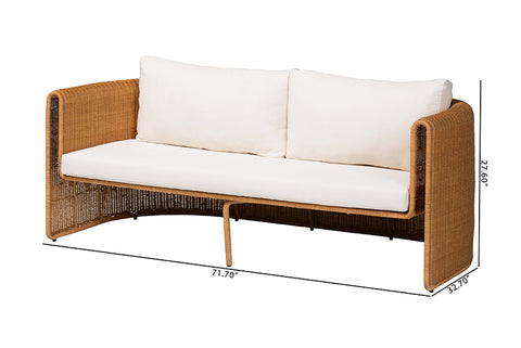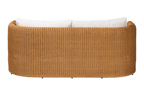 bali & pari Carina Natural Rattan Sofa with Cushion - Handwoven 3-Seater Couch with U-Shaped Sculptural Frame and Deep Seating for Boho, Coastal, or Tropical Living Spaces