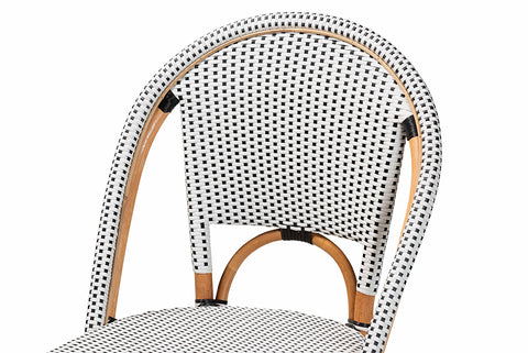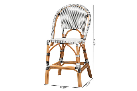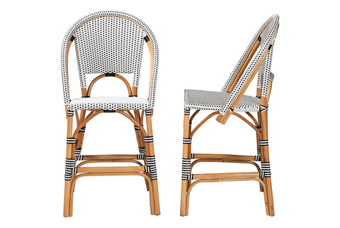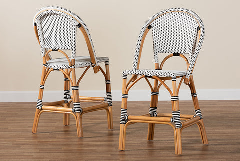 bali & pari Genica Classic French Two-Tone Black and White Weaving and Natural Rattan 2-Piece Counter Stool Set