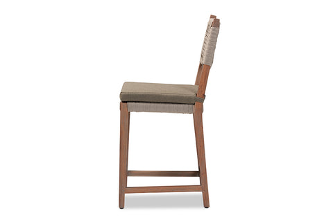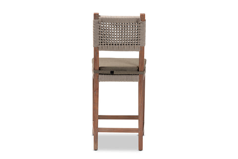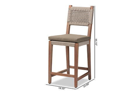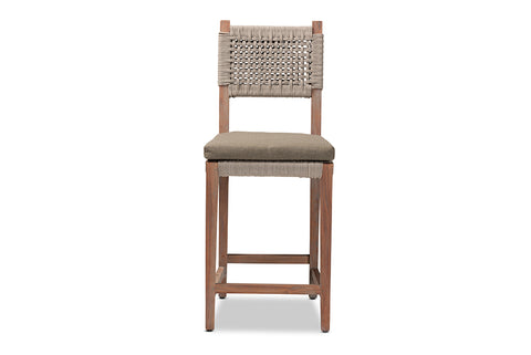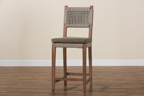 bali & pari Heyna Mid-Century Transitional Grey Woven Rope Mahogany Counter Stool