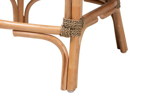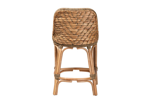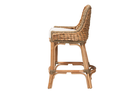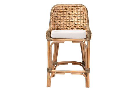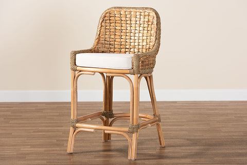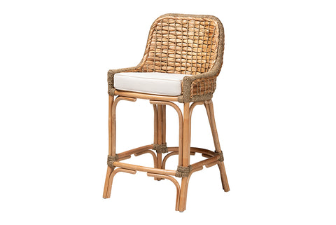 bali & pari Kyle Modern Bohemian Natural Brown Woven Rattan Counter Stool with Cushion