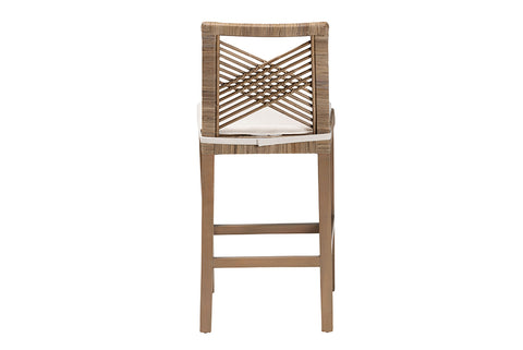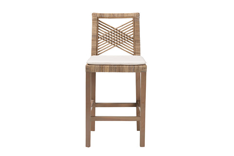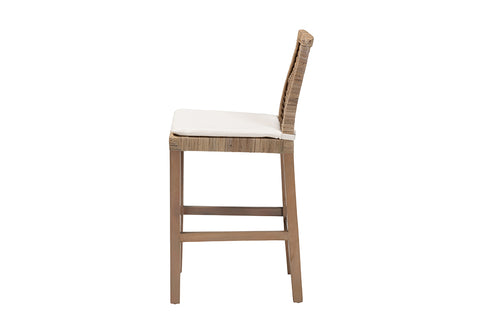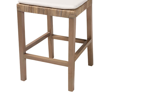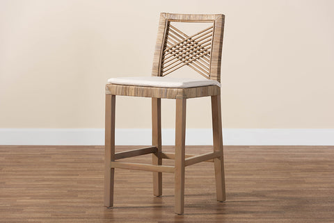 bali & pari Poltak Modern Bohemian Grey Natural Kubu Rattan and Mahogany Wood Counter Stool