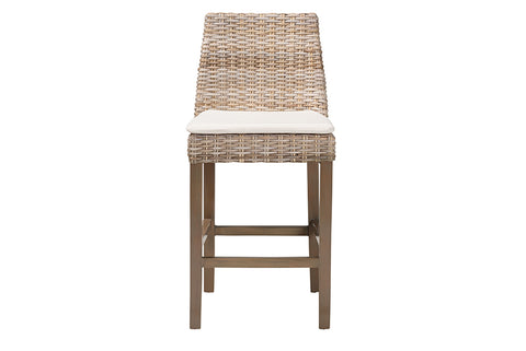 bali & pari Toby Modern Bohemian Grey Kubu Rattan and Rustic Taupe Finished Mahogany Wood Counter Stool