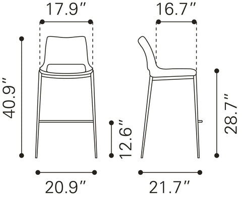 Zuo Ace Barstool (Set of 2) Black & Silver