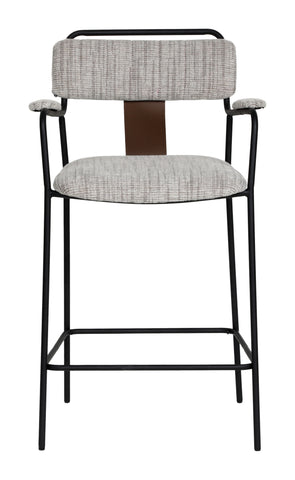 The Couva Counter Stool epitomizes contemporary sophistication and comfort. Its sturdy steel frame and luxuriously fabric-covered seat with arms seamlessly combine durability with style. Its modern and deco-inspired design adds a touch of elegance to any residential or hospitality space. Whether nestled at a kitchen counter or gracing a trendy bar, the Couva Counter Stool enhances the ambiance with its sleek presence. Embrace its blend of form and function, where modern aesthetics meet timeless comfort, making it the perfect choice for both residential and hospitality settings. Features: Assembly required, Soft chenille fabric, Armrest support, Ergonomic and supportive footrest, Powder coated steel leg, Rubber feet help prevent floor scratches, Supports up to 350 lb. Dimensions: 22.8" W x 20.9" D x 38.2" H. Weight: 16,3 lbs.