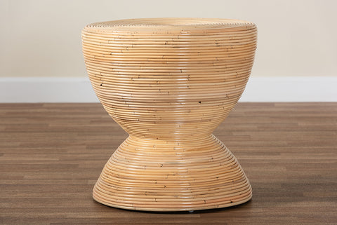 bali & pari Tokyo Laminated Natural Rattan Side Table - Hourglass Accent Table with Modern Sculptural Design, Boho Chic Style for Living Room or Bedroom, Natural