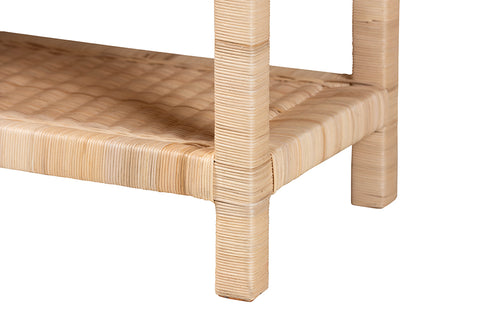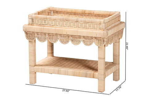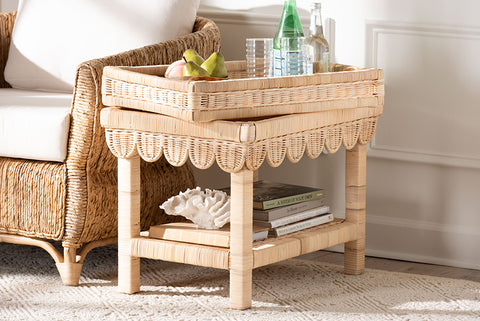 bali & pari Weyman Scalloped Rattan End Table with Removable Tray Top - Handwoven Rattan Accent Table with Shelf, Coastal Boho Style Side Table for Living Room or Bedroom