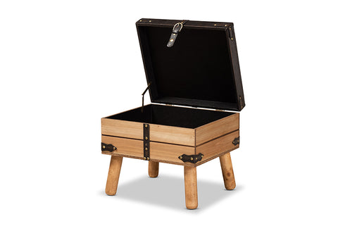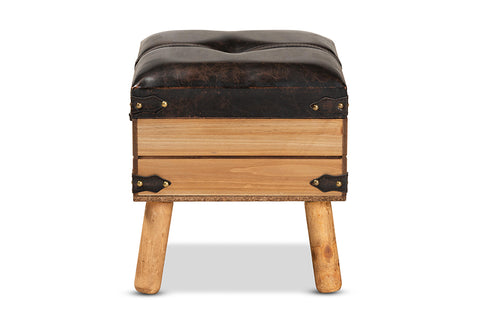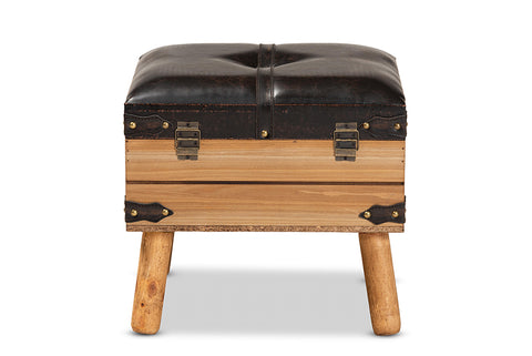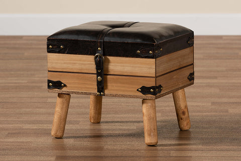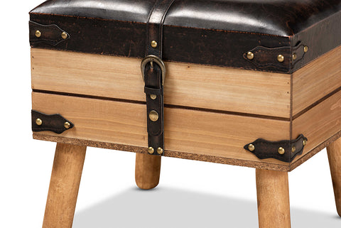 Baxton Studio Amena Rustic Transitional Dark Brown PU Leather Upholstered and Oak Finished Wood Small Storage Ottoman