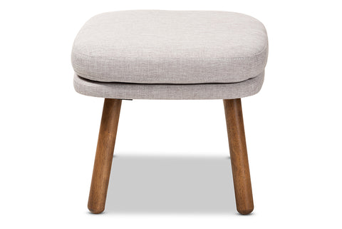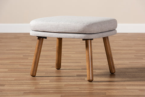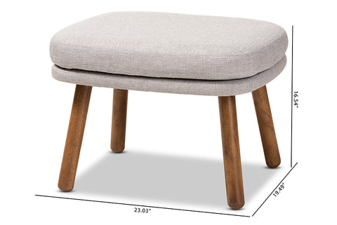 Baxton Studio Lovise Mid-Century Modern Greyish Beige Fabric Upholstered Walnut Brown Finished Wood Ottoman