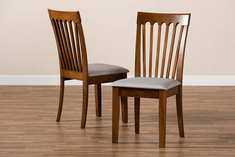 Baxton Studio Minette Modern and Contemporary Grey Fabric Upholstered Walnut Brown Finished Wood 2-Piece Dining Chair Set