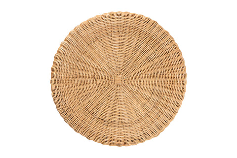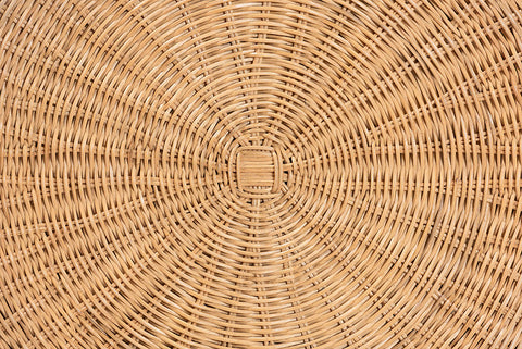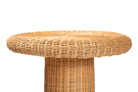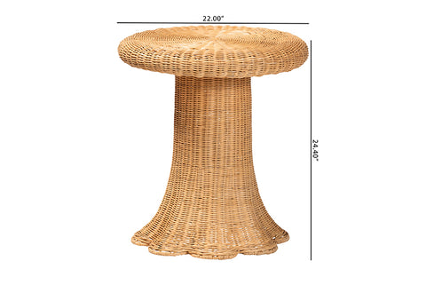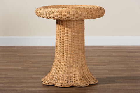 bali & pari Avalon Scallop Natural Rattan Pedestal Side Table - Round Handwoven Wicker Accent Table with Skirted Base, Boho Coastal Style Furniture for Living Room, Hallway or Sunroom