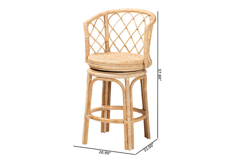 bali & pari Ayu Bohemian Light Honey Rattan Swivel Counter Stool