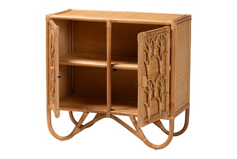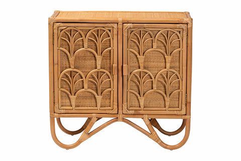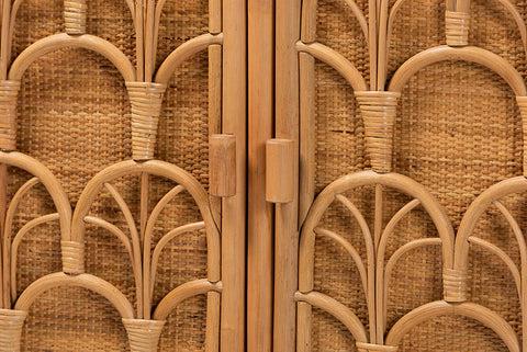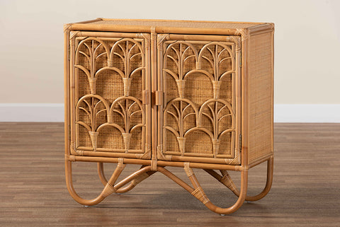 bali & pari Baylor Bohemian Light Honey Rattan Storage Cabinet