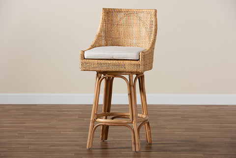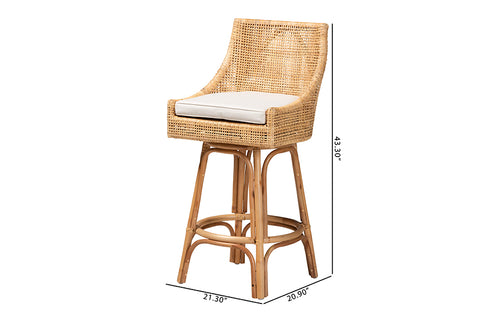 bali & pari Bella Modern Bohemian Natural Brown Rattan Bar Stool